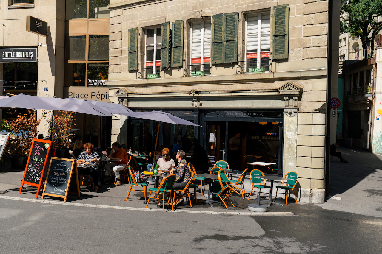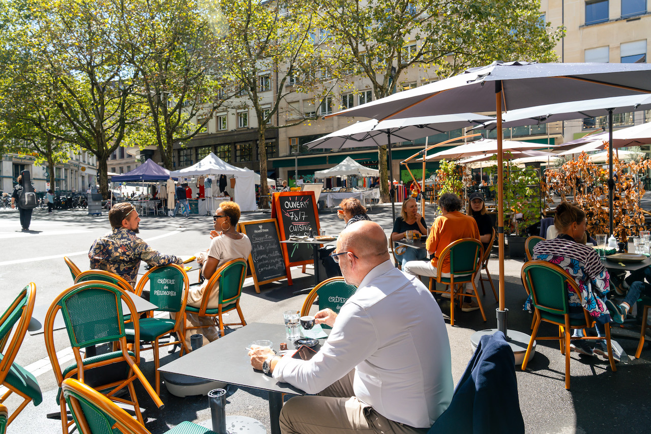 A seulement 5minutes à pied du Métro M2 Flon, notre terrasse bénéficie d’un emplacement idéal les jours de marché, le mercredi et le samedi.